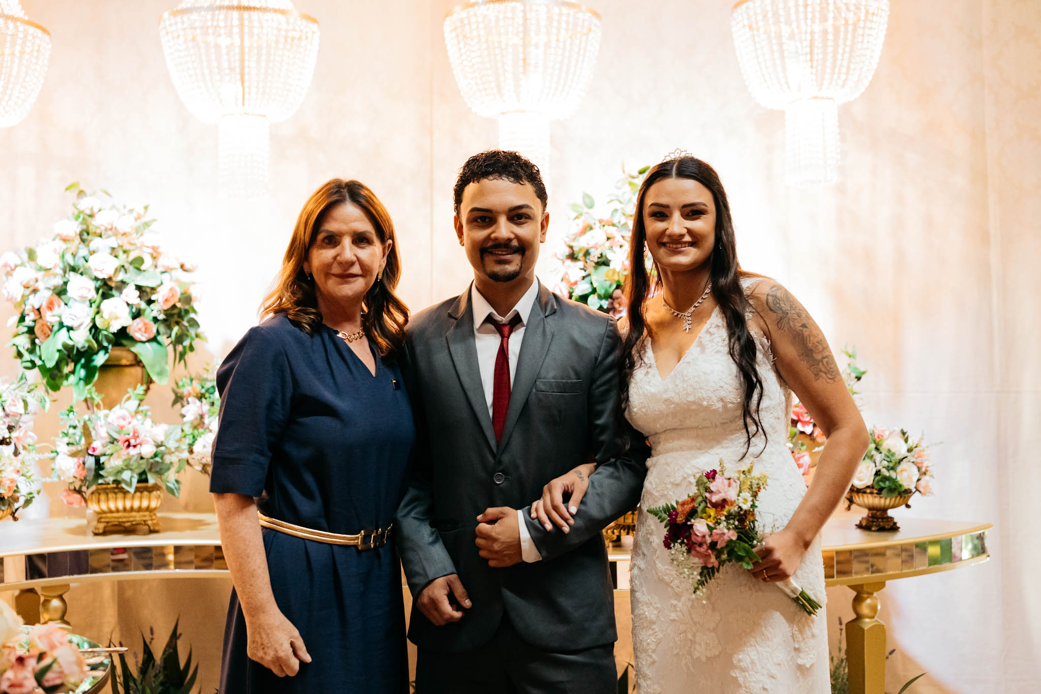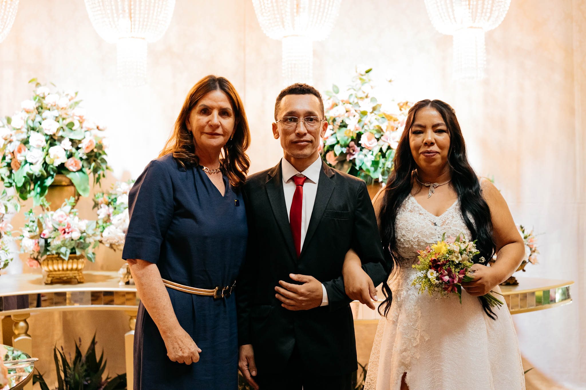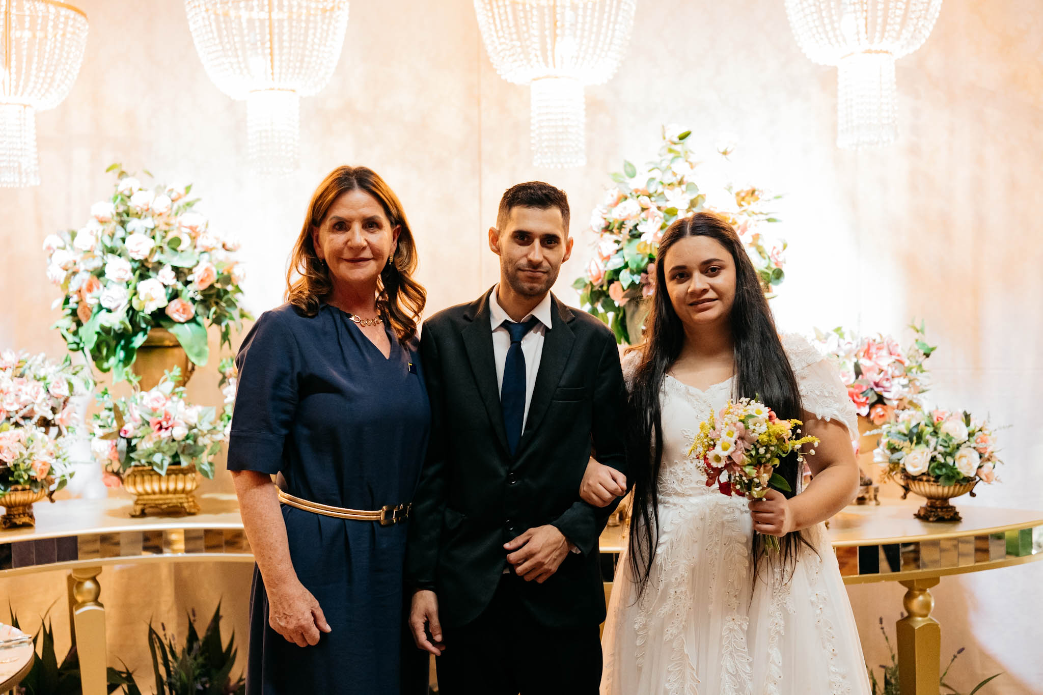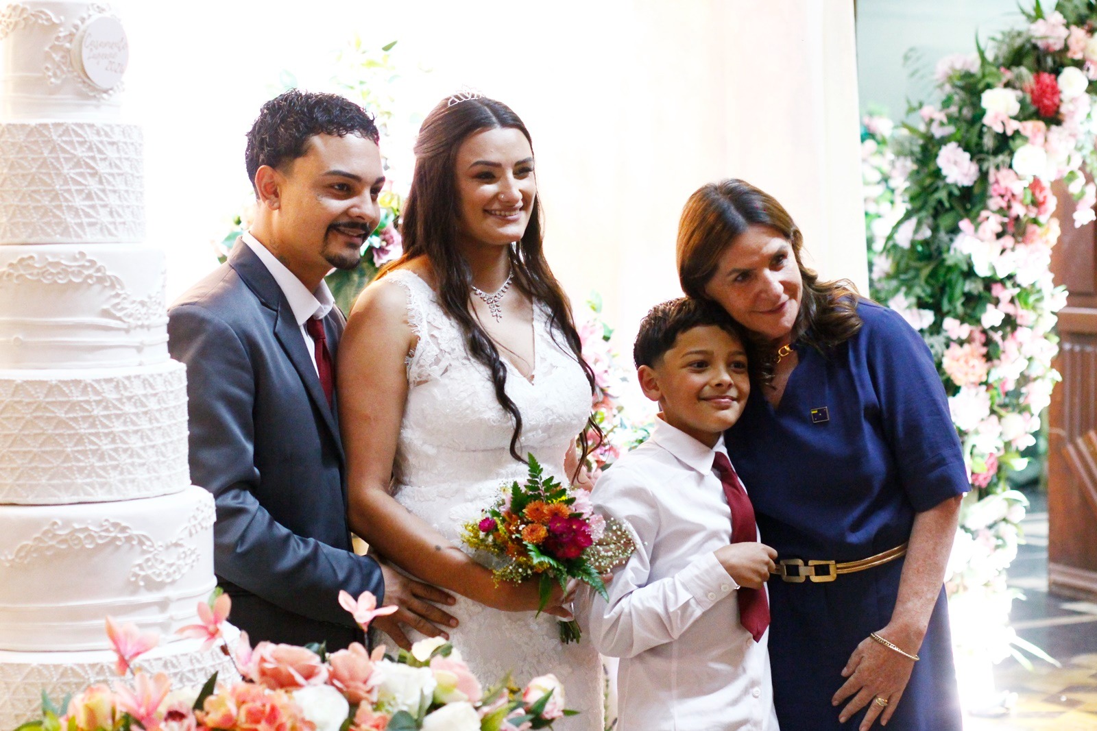 A cerimônia, conduzida com trilha sonora cuidadosamente escolhida e mensagens que celebram o amor e a união, reuniu familiares, padrinhos, amigos e autoridades