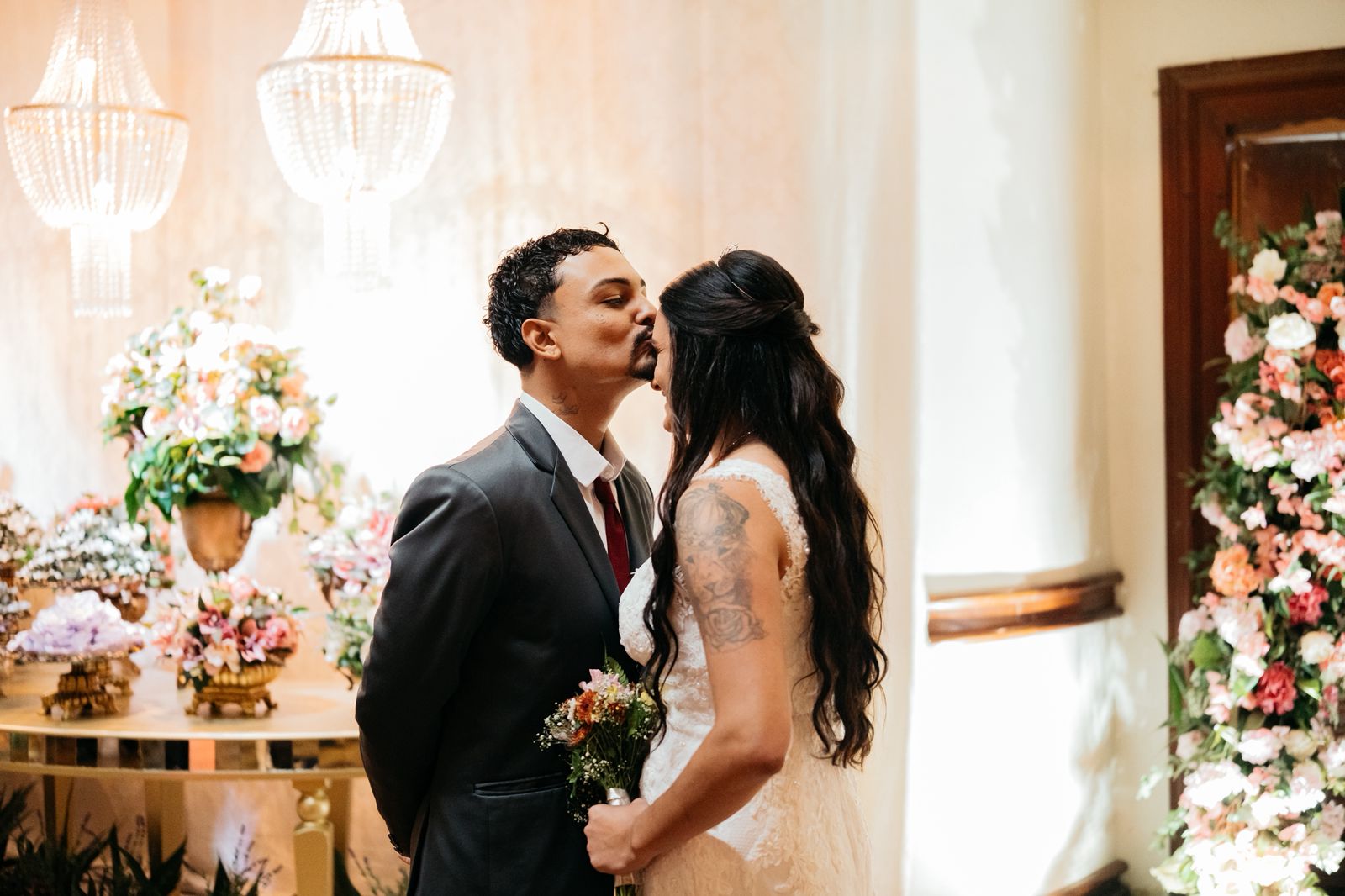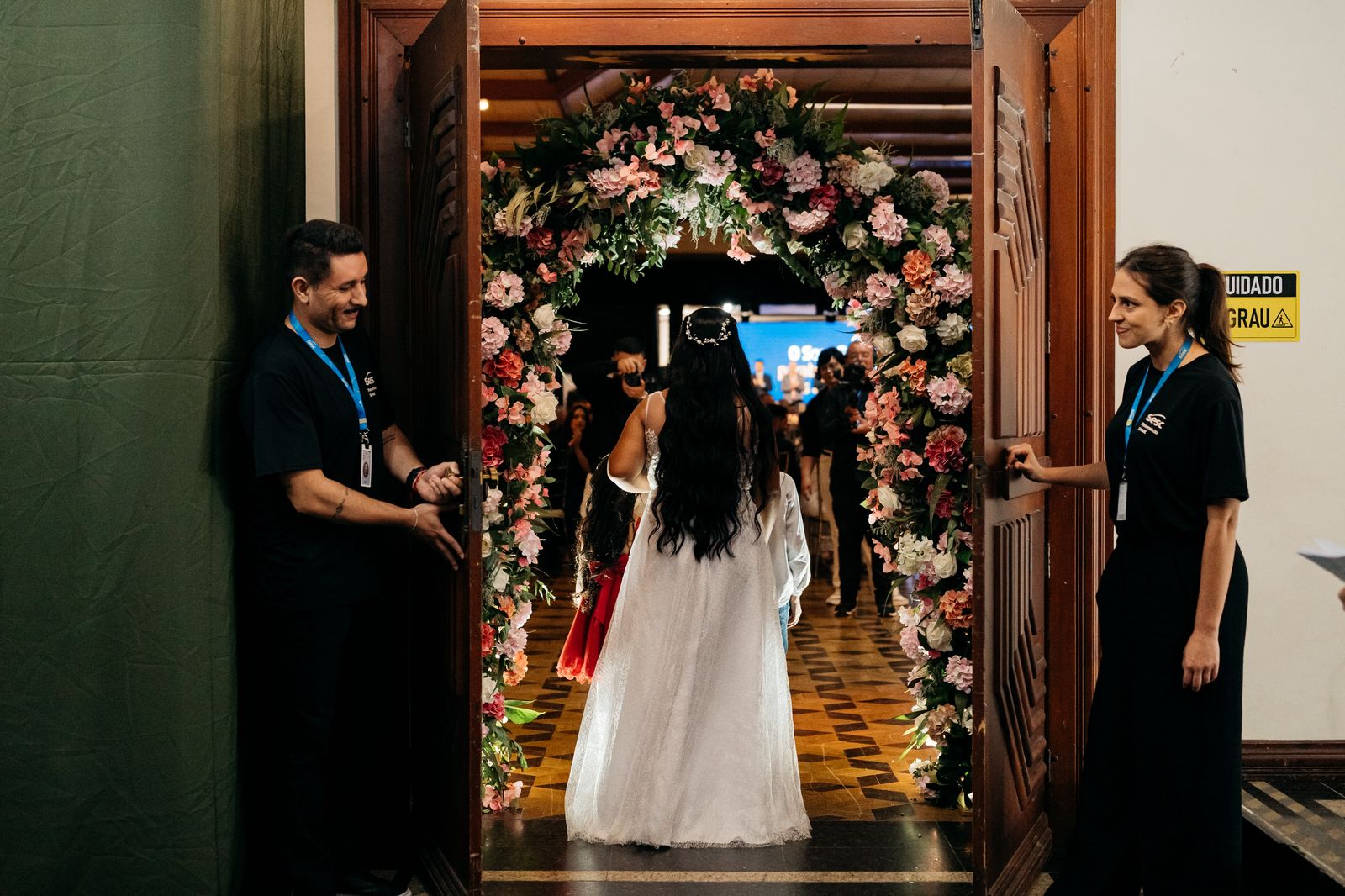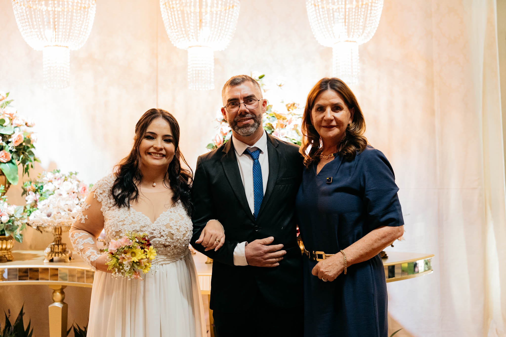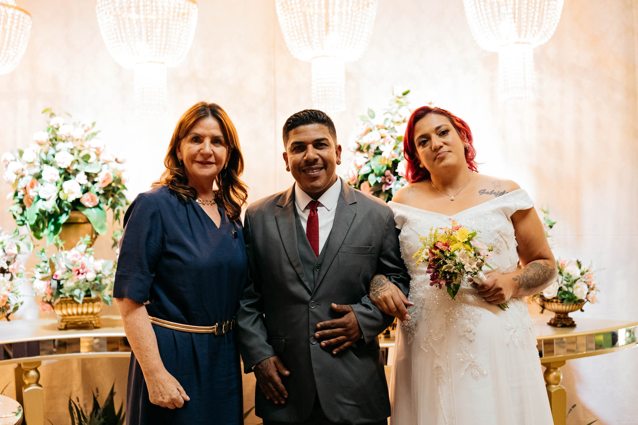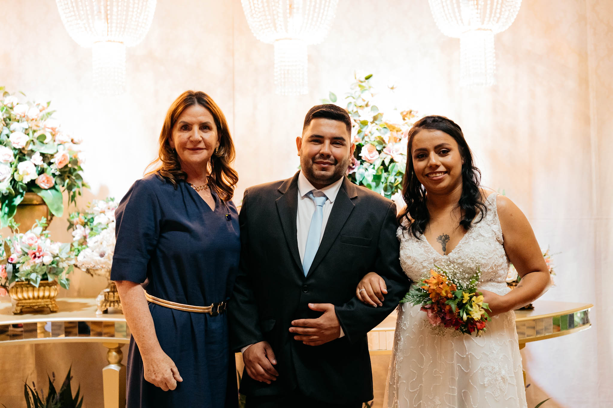 A cerimônia, conduzida com trilha sonora cuidadosamente escolhida e mensagens que celebram o amor e a união, reuniu familiares, padrinhos, amigos e autoridades