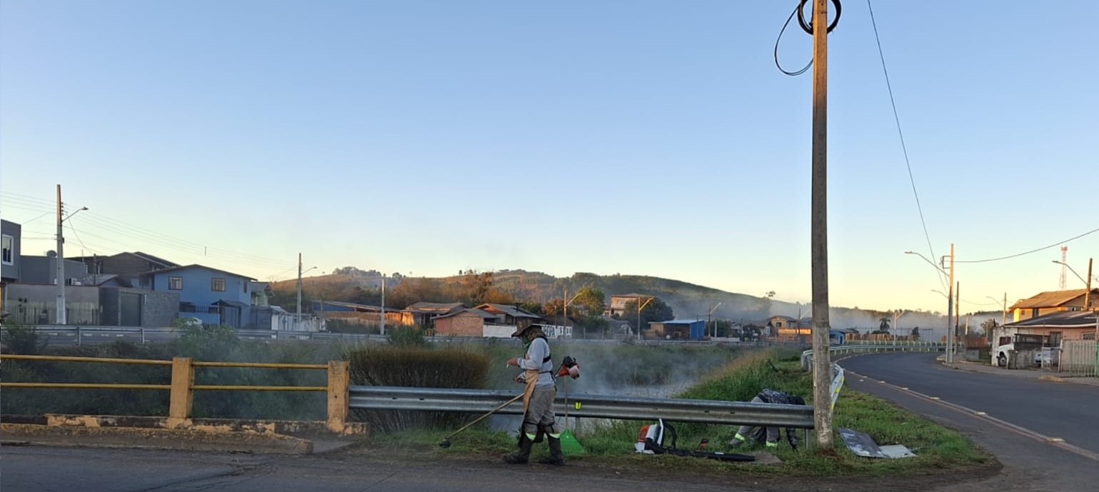 Os trabalhos incluíram a limpeza e roçada no acesso à unidade da Ambev e vão até a SC-114, além da desobstrução de canaletas de drenagem, fundamentais para evitar alagamentos e garantir o escoamento adequado da água da chuva. No bairro Santa Maria, as equipes iniciaram pela Rua Quinze de Novembro e avançaram por todo o bairro até a BR 282, já nos bairros São Pedro e São Francisco, a Rua Professor Simplício e a Avenida Heitor Villa-Lobos, que também fazem ligação até a BR 282.