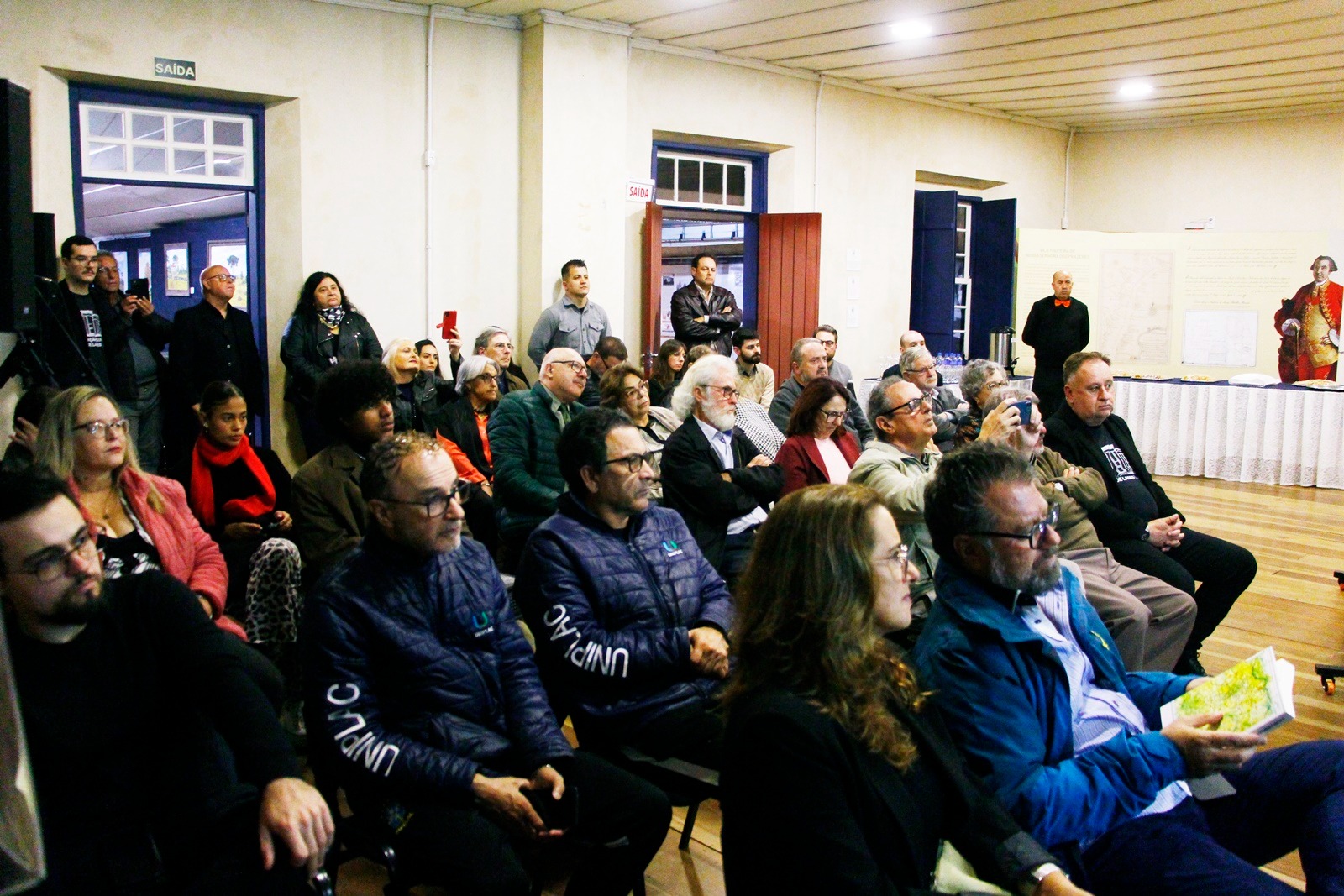 Além do lançamento do livro e da exibição do documentário, o evento também teve a exposição de Jonas Malinverni, que apresentou obras durante a programação, contribuindo para a ambientação cultural da noite.